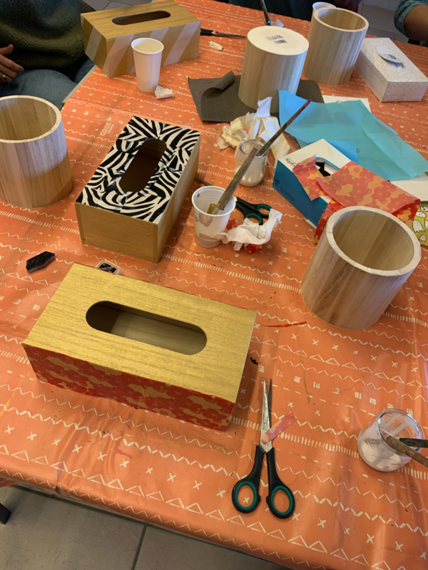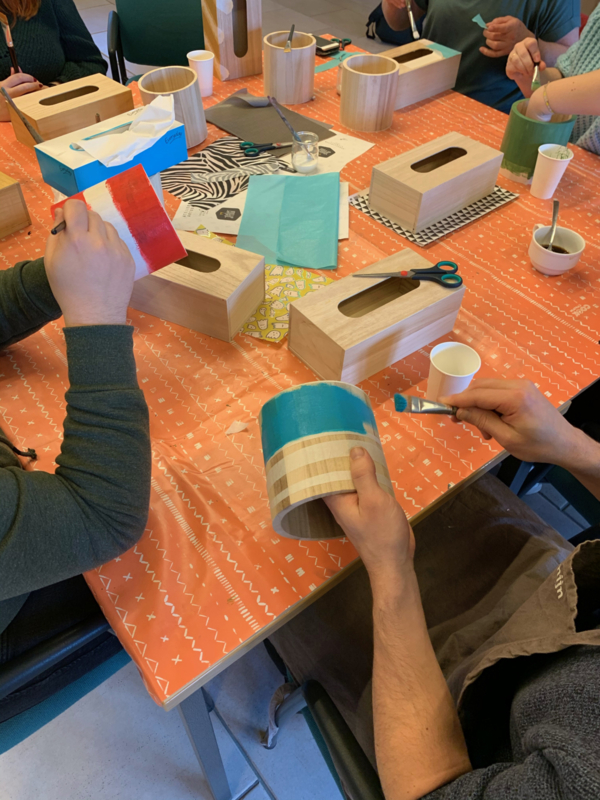 We gaan aan de slag met verf, acrylstiften, collagepapier en lijm en toveren blanco houten materialen om tot echte eye catchers.